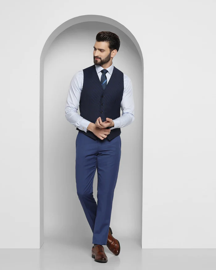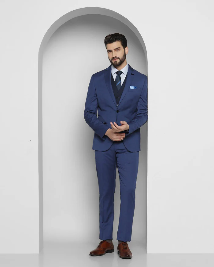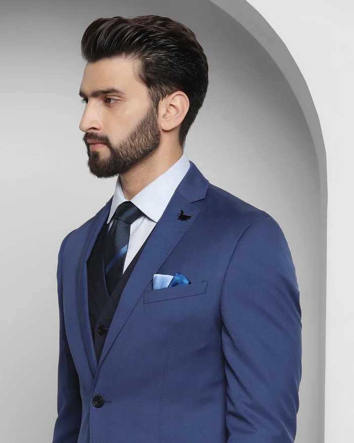 Experience the power of impeccable tailoring with this Blue 3 Pieces Premium Suit, a wardrobe staple that embodies sophistication. Designed with a slim, comfort fit, it effortlessly enhances your silhouette, providing a sleek and tailored appearance that exudes confidence and professionalism. The single-breasted jacket is adorned with a classic notch lapel, a timeless feature that adds sophistication to your look.